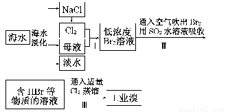 海水是巨大的資源寶庫,在海水淡化及綜合利用方面,天津市位居全國前列。從海水中提取食鹽和溴的過程如下: