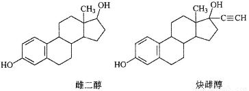 雌二醇和炔雌醇是兩種雌激素用藥,它們的結(jié)構(gòu)簡(jiǎn)式如下,關(guān)于它們的說法不正確的是