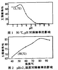 B.PH=2,溫度在40~80 oC,X降解率溫度升高而增大