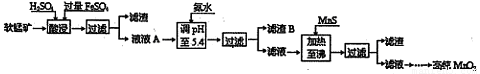 ?? 某軟錳礦的主要成分為MnO2,還含有Si(16.27%)、Fe(5.86%)、Al(3.42%)、Zn(2.68%)和Cu(0.86%)等元素的化合物。部分陽離子以氫氧化物或硫化物的形式完全沉淀時(shí)溶液的pH見下表。