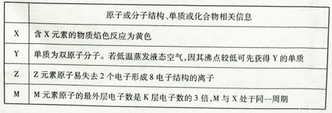 現(xiàn)有X、Y、Z、M四種元素均為短周期元素。有關(guān)信息如下表: