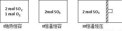 2SO3(g),其正反應(yīng)放熱,F(xiàn)有三個(gè)體積相同的密閉容器Ⅰ、Ⅱ、Ⅲ,按如下圖所示投料,并在400℃條件下開始反應(yīng)。達(dá)到平衡時(shí),下列說(shuō)法正確的是