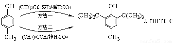 BHT(Butylated Hydroxy Toluene)是一種常用的食品抗氧化劑,合成方法有如下兩種: