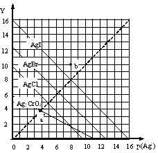 一定溫度下,鹵化銀AgX(X:Cl—、Br—、I—)及Ag2CrO4的沉淀溶解平衡曲線如圖所示。橫坐標(biāo)p(Ag+)表示“-lgc(Ag+)”,縱坐標(biāo)Y表示“ -lgc(X-)”或“-lgc(CrO42—)”。下列說(shuō)法正確的是