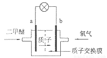 下圖是一種新型的質(zhì)子交換膜二甲醚燃料電池(DDFC)。電池總反應(yīng)為:CH3OCH3+3O2=2CO2+3H2O,下列說(shuō)法不正確的是