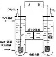 人工腎臟可用間接電化學(xué)方法除去代謝產(chǎn)物中的尿素[(CO(NH2)2) ],即通過陽極反應(yīng)生成具有強(qiáng)氧化作用的中間產(chǎn)物來氧化代謝產(chǎn)物,原理如右圖所示,下列說法正確的是