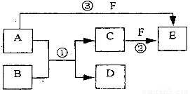 A、B、C、D、 E、F六種物質(zhì)的相互轉(zhuǎn)化關(guān)系如下圖所示(反應(yīng)條件未標(biāo)出),其中反應(yīng)①是置換反應(yīng),B、C、F都是氣態(tài)單質(zhì),且B為黃綠色:反應(yīng)③中有水生成,反應(yīng)②需要放電才能發(fā)生,A是—種極易溶于水的氣體,A和D相遇有白煙生成。
