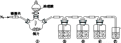 ①中產(chǎn)生大量的紅棕色氣體,紅棕色氣體在②中變?yōu)闊o(wú)色,氣體通過(guò)③后依然為無(wú)色,通過(guò)④后變?yōu)榧t棕色
