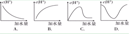 冰醋酸加水稀釋時(shí),溶液中的氫離子濃度隨加入的水量變化的下列各曲線圖中,正確的是 ( )