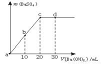 室溫下,向0.1 mol·L-1的硫酸溶液中逐滴加入物質(zhì)的量濃度相同的氫氧化鋇溶液,生成沉淀的量與加入氫氧化鋇溶液的體積關(guān)系如圖所示,a、b、c、d分別表示實(shí)驗(yàn)時(shí)不同階段的溶液,下列有關(guān)說(shuō)法中不正確的是