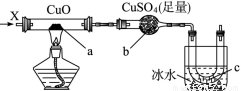 按下圖裝置,持續(xù)通入X氣體,可以看到a處有紅色物質(zhì)生成,b處變藍(lán),c處得到液體,則X氣體可能是( )。