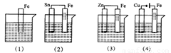 下圖各容器中盛有海水,鐵在其中腐蝕時由快到慢的順序是