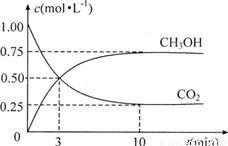 由于溫室效應(yīng)和資源短缺等問題,如何降低大氣中的CO2含量并加以開發(fā)利用,引起了各國(guó)的普遍重視。目前工業(yè)上有一種方法是用CO2生產(chǎn)燃料甲醇。一定條件下發(fā)生反應(yīng):