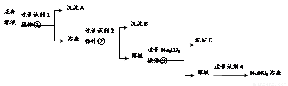 為提純含NaCl和Na2SO4兩種雜質(zhì)的NaNO3溶液,且逐一分離出雜質(zhì),某同學(xué)設(shè)計(jì)了如下的實(shí)驗(yàn)流程: