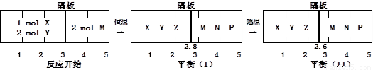 分別在密閉容器的兩個反應(yīng)室中進(jìn)行,反應(yīng)室之間有無摩擦、可滑動的密閉隔板。反應(yīng)開始和達(dá)到平衡狀態(tài)時有關(guān)物理量的變化如圖所示: