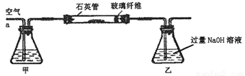 Ⅰ、將m1 g該黃鐵礦樣品放入如下圖所示裝置(夾持和加熱裝置省略)的石英管中,從a處不斷地緩緩通入空氣,高溫灼燒石英管中的黃鐵礦樣品至反應完全。石英管中發(fā)生反應的化學方程式為:4FeS2+11O2