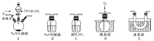 亞硝酸鈉(NaNO2)暴露于空氣中會(huì)與氧氣反應(yīng)生成硝酸鈉,在纖維紡織品的染色和漂白、照相、生產(chǎn)橡膠、制藥等領(lǐng)域有廣泛應(yīng)用,也常用于魚類、肉類等食品的染色和防腐。但因其有毒,所以在食品行業(yè)用量有嚴(yán)格限制,F(xiàn)用下圖所示儀器(夾持裝置已省略)及藥品,探究亞硝酸鈉與硫酸反應(yīng)及氣體產(chǎn)物成分。
