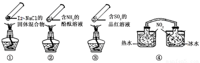 C.④中,浸泡在熱水中的容器內(nèi)氣體顏色變深,浸泡在冰水中的容器內(nèi)氣體顏色變淺