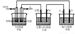 如下圖所示,其中甲池的總反應式為:2CH3OH+3O2+4KOH=2K2CO3+6H2O