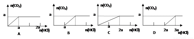 在分別含amol的Na2CO3和NaOH的混合溶液中逐滴滴加稀鹽酸,則產(chǎn)生氣體與加入鹽酸的圖像正確的是