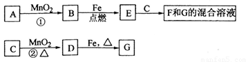A~G各物質(zhì)間的關(guān)系如下圖,其中B、D為氣態(tài)單質(zhì)。