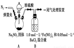 某研究小組利用下圖裝置探究SO2和Fe(NO3)3溶液的反應。已知:1.0 mol·L-1的Fe(NO3)3溶液的pH=1