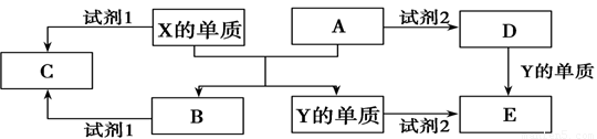 A、B、C、D、E是中學常見的幾種化合物,A、B是氧化物,元素X、Y的單質是生活中常見的金屬,相關物質間的關系如下圖所示。