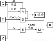 已知X、Y、Z為單質(zhì),其他為化合物。其中Y為氣體,G溶液呈黃色,E是不溶于水的酸性氧化物,能與氫氟酸反應(yīng),它們之間存在如下轉(zhuǎn)化關(guān)系(部分產(chǎn)物已略去)。請回答下列問題: