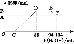 實(shí)驗(yàn)研究發(fā)現(xiàn),硝酸發(fā)生氧化還原反應(yīng)時(shí),硝酸的濃度越稀,對(duì)應(yīng)還原產(chǎn)物中氮元素的化合價(jià)越低,F(xiàn)有一定量鋁粉和鐵粉的混合物與一定體積某濃度的稀硝酸充分反應(yīng),反應(yīng)過程中無氣體放出。在反應(yīng)結(jié)束后的溶液中,逐滴加入5 mol·L-1的NaOH溶液,所加NaOH溶液的體積(mL)與產(chǎn)生的沉淀的物質(zhì)的量關(guān)系如圖所示。則