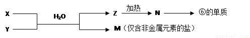 X溶液與Y溶液反應(yīng)的離子方程式為 ,N→⑥的單質(zhì)的化學(xué)方程式為 。