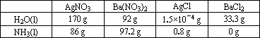 已知4℃時(shí)4種化合物在水中和液氨中的溶解度如下表: