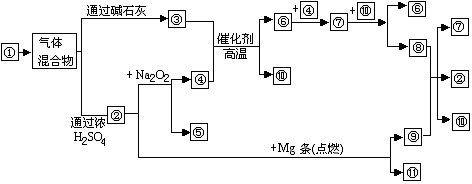 如圖所示中①~ 分別代表有關(guān)反應(yīng)中的一種物質(zhì),請(qǐng)?zhí)顚?xiě)以下空白.