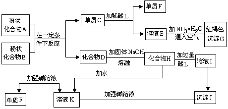 A、B是中學(xué)化學(xué)里常用的物質(zhì),其中B是單質(zhì),A是化合物,它們之間相互反應(yīng)以及生成物之間的轉(zhuǎn)化關(guān)系如圖所示:已知D溶液跟石碳酸溶液混合時(shí),溶液顯紫色,請(qǐng)回答: