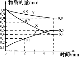 某溫度時,在2 L容器中X、Y、Z三種物質(zhì)隨時間的變化關(guān)系曲線如圖所示.