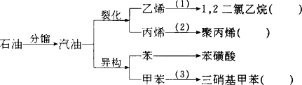 汽油不僅是最重要的燃料,而且是重要的化工原料,它既可以裂解得到氣態(tài)化工原料,如乙烯等,還可以在催化劑催化下改變分子結(jié)構(gòu),由鏈烴變成芳香烴,如己烷變成苯,庚烷變成甲苯,這個(gè)變化叫異構(gòu)化.請(qǐng)根據(jù)以汽油為原料的下列衍變關(guān)系,寫出相應(yīng)的化學(xué)方程式,在括弧中填反應(yīng)類型.