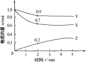 某溫度時,在2 L容器中X、Y、Z三種物質(zhì)的物質(zhì)的量隨時間的變化曲線如下圖所示.由圖中數(shù)據(jù)分析,該反應(yīng)的化學(xué)方程式為________;反應(yīng)開始至2 min,Z的平均反應(yīng)速率為________.