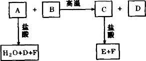 化合物A、D、F是中學(xué)化學(xué)中常見的物質(zhì),化合物B、C、E中含有兩種相同的元素.這些化合物之間存在如下所示轉(zhuǎn)化關(guān)系.其中A和B的反應(yīng)是一種重要化工生產(chǎn)中的主要反應(yīng)之一.