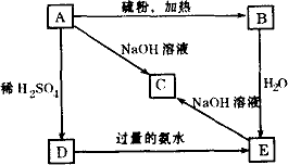 如圖所示的各步反應(yīng)中,生成物E是白色沉淀,分別指出A、B、C、D、E是什么物質(zhì)(寫(xiě)出分子式),并寫(xiě)出各步反應(yīng)的離子方程式(不是離子反應(yīng)的寫(xiě)化