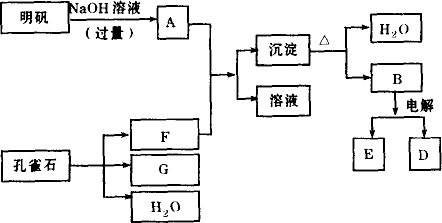 (1)孔雀石的主要成分是CuCO3·Cu(OH)2(堿式碳酸銅),受熱易分解.上圖中的F是________.
