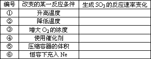 2SO3,當(dāng)其他條件不變時(shí),只改變一個(gè)反應(yīng)條件,將生成SO3的反應(yīng)速率的變化填入下表空格里.(填“增大”、“減小”或“不變”)