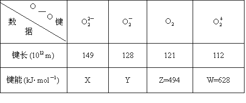 以下是實驗測得不同物質中氧——氧之間的鍵長和鍵能的數(shù)據(jù):