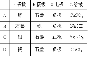 圖中X、Y分別是直流電源的兩極,通電后發(fā)現(xiàn)a極板質(zhì)量增加,b極板處有無色無味氣體放出,符合這一情況的是