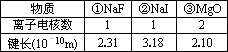 NaF、NaI、MgO均為離子化合物,根據下列數據,這三種化合物的熔點高低順序是