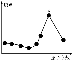 原子序數(shù)小于18的八種連號(hào)元素,它們單質(zhì)的熔點(diǎn)隨原子序數(shù)的增大而變化的趨勢(shì)如圖所示,其中X元素應(yīng)屬于