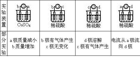 有a、b、c、d四個(gè)金屬電極,有關(guān)的反應(yīng)裝置及部分反應(yīng)現(xiàn)象如下: