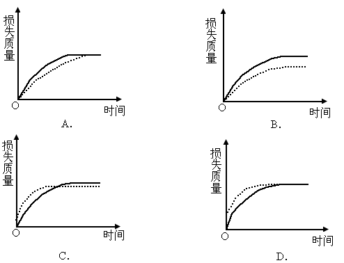 將ag塊狀碳酸鈣跟足量鹽酸反應(yīng),反應(yīng)物損失的質(zhì)量隨時(shí)間變化曲線如下圖的實(shí)線所示.在相同的條件下,將bg(