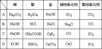 下列各組均有四種物質,其中有一種物質與其他三種物質的類別不同,請將該