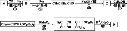 化合物A是石油化工的一種重要原料,用A和水煤氣為原料經下列途徑合成化合物D(分子式為C3H6O3).