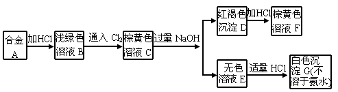 A為兩種金屬組成的合金,發(fā)生如圖所示的變化: