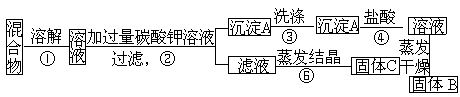 ①為進(jìn)行稱量、溶解、反應(yīng)、過(guò)濾、洗滌沉淀的各項(xiàng)操作,準(zhǔn)備了以下儀器:托盤天平和砝碼、燒杯、過(guò)濾器、鐵架臺(tái)及附件、膠頭滴管、量筒.其中還缺少的一件必備的儀器是________.